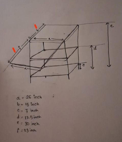 Date: 2 March – নিচে পা গুলোতে চাকা থাকবে – সামনের অংশ foldable হবে – Foldable part এ 2টি স্ট্যান্ড থাকবে – স্ট্যান্ডে lock system থাকবে যাতে নড়াচড়া না করে – কালার: তেতুল বিচি (Tetul Bichi Color) Image অনুযায়ী Measurement: a. (Length): 26 inch b. (Width): 15 inch e. (Total Height): 30 inch d. (Middle…
