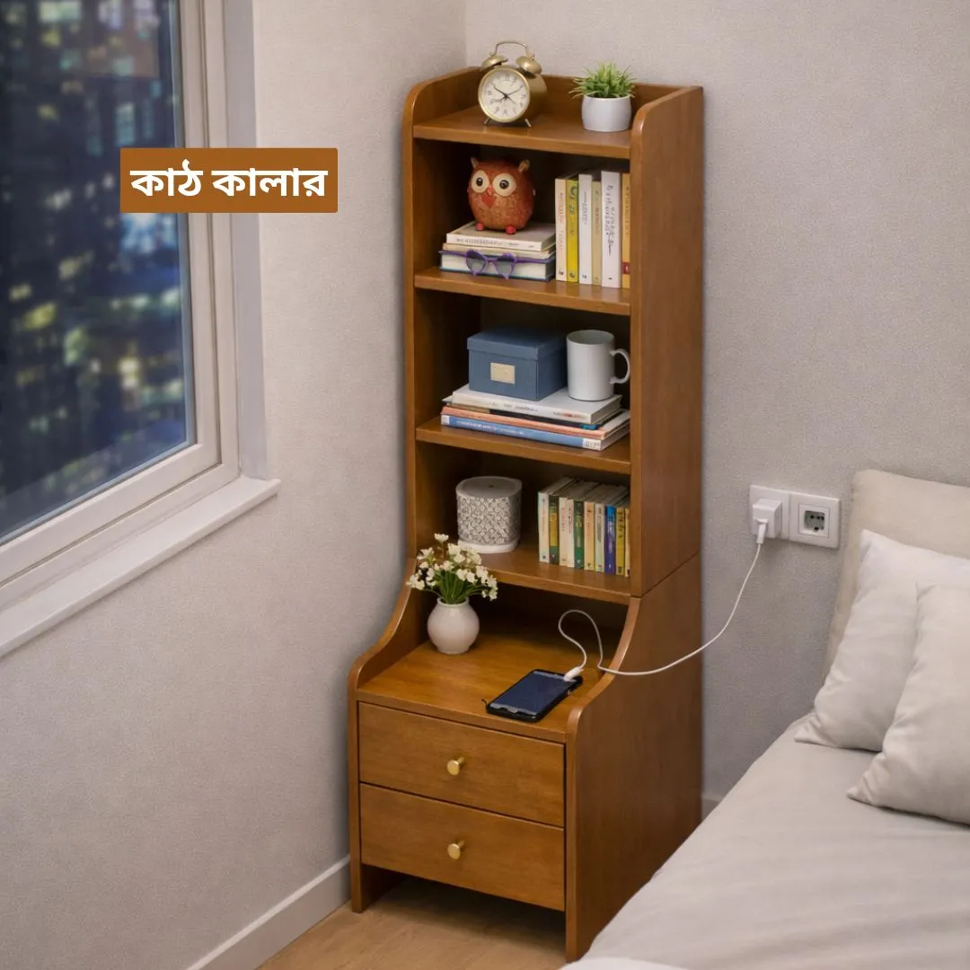 বেডসাইড বুকশেলফ উইথ ড্রয়ার – Bedside Bookshelf with Drawer